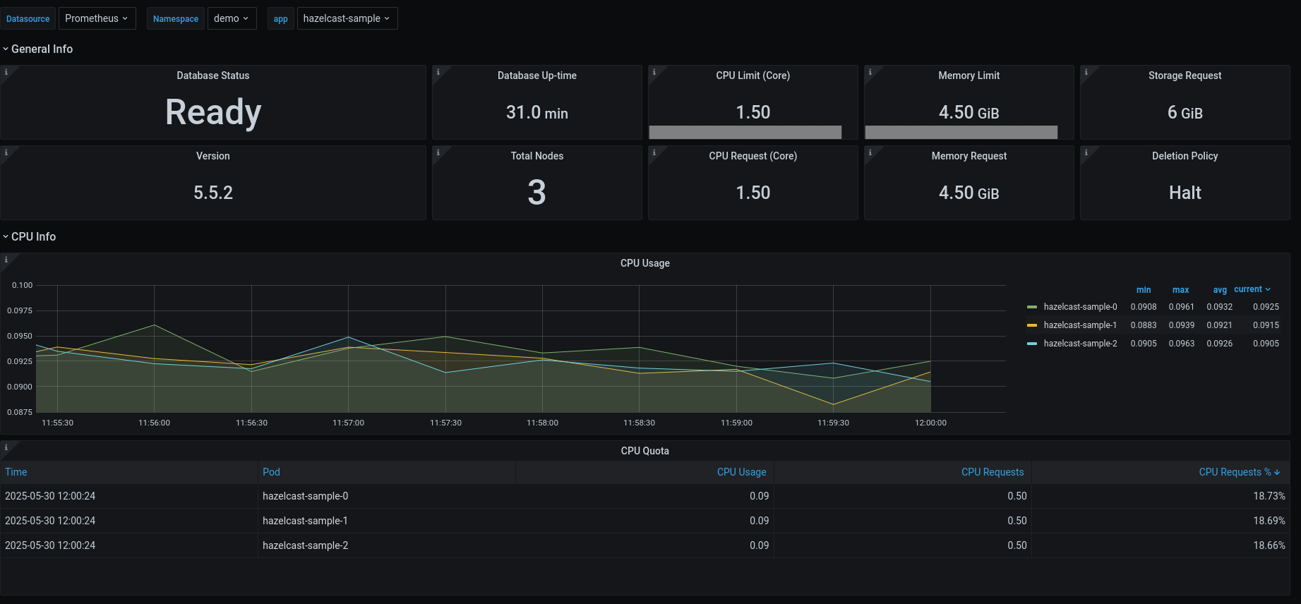 Here’s a preview of the Summary dashboard for Hazelcast: